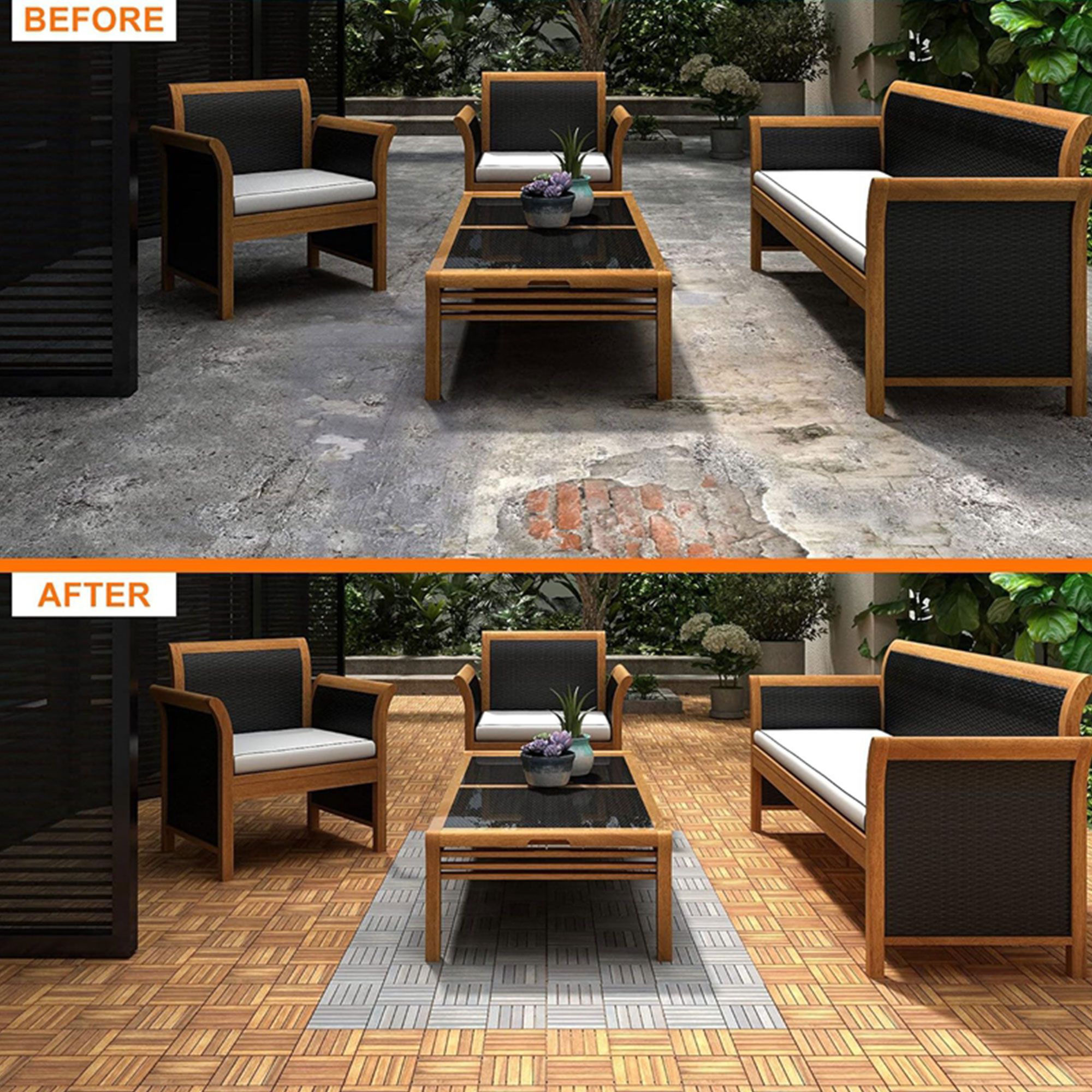 ركّب البلاط بسهولة بنظام الكليك بدون أدوات، رتب البلاطات بالشكل المناسب لمساحتك، ويمكن قصها لتناسب الأطراف والزوايا.