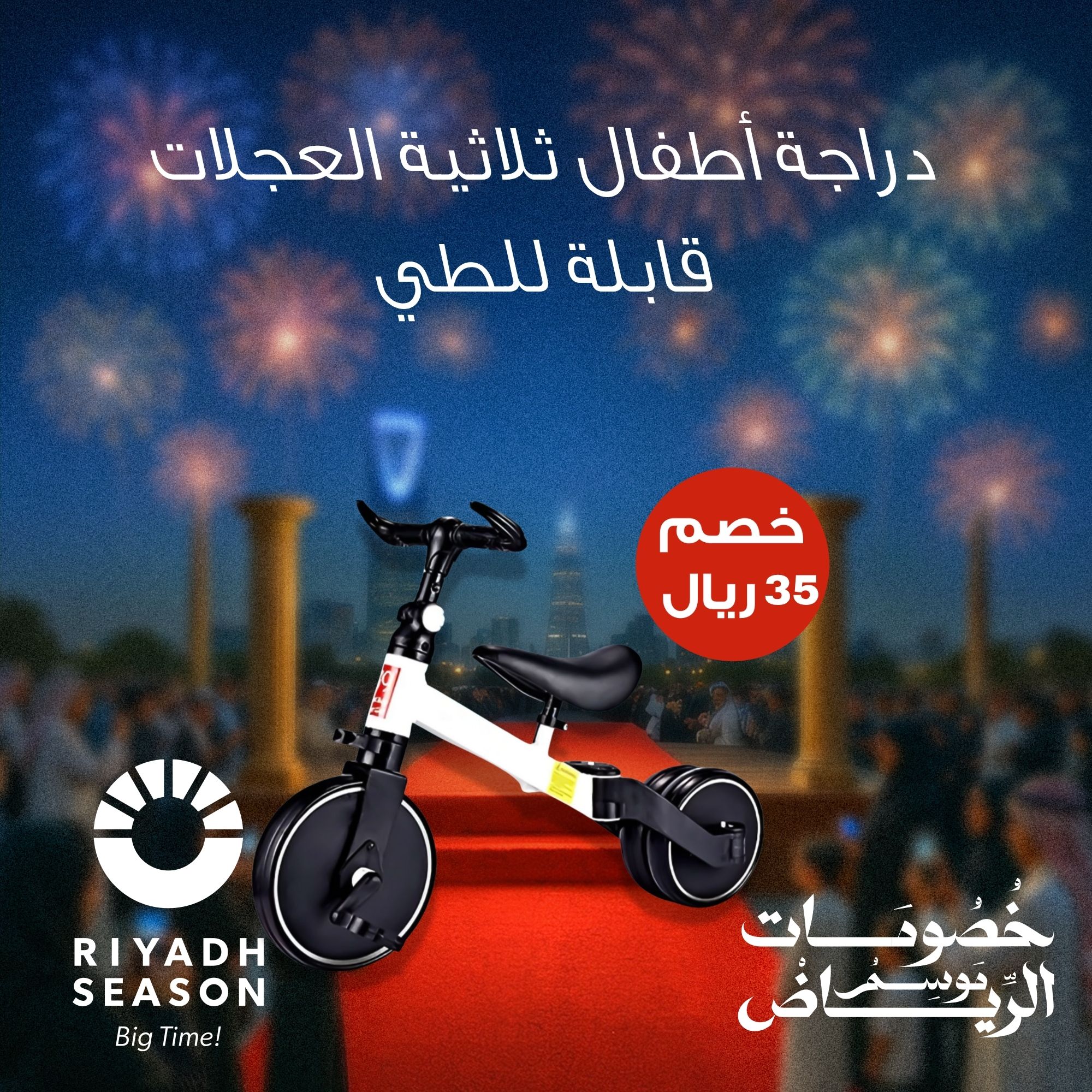 ثلاث عجلات تعطي ثبات للطفل المبتدئ.