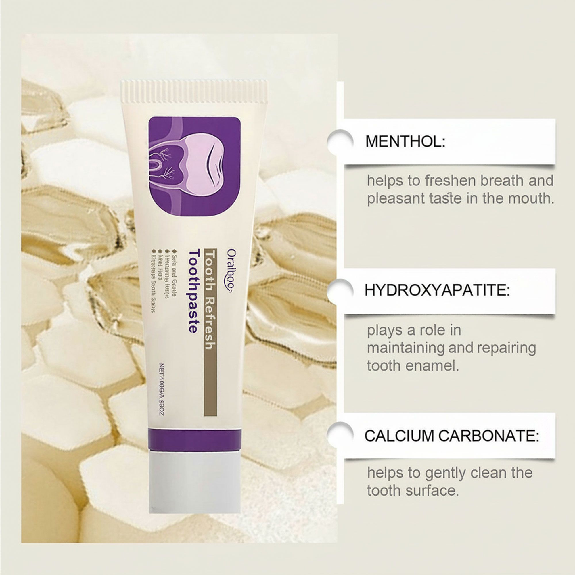 ﯾﺑﯾض اﻷﺳﻧﺎن وﯾزﯾل اﻟﺑﻼك واﻟﺑﻘﻊ ﯾﻘوي اﻟﻣﯾﻧﺎ وﯾﺣﺎﻓظ ﻋﻠﻰ أﺳﻧﺎن ﺻﺣﯾﺔ ﯾﻧﻌش اﻟﻧﻔس وﯾﻘﻠل اﻟرواﺋﺢ اﻟﻛرﯾﮭﺔ ﺧﻔﯾف وﻟطﯾف ﻋﻠﻰ اﻷﺳﻧﺎن واﻟﻠﺛﺔ ﻣﻛوﻧﺎت طﺑﯾﻌﯾﺔ آﻣﻧﺔ ﻟﻼﺳﺗﺧدام اﻟﯾوﻣﻲ