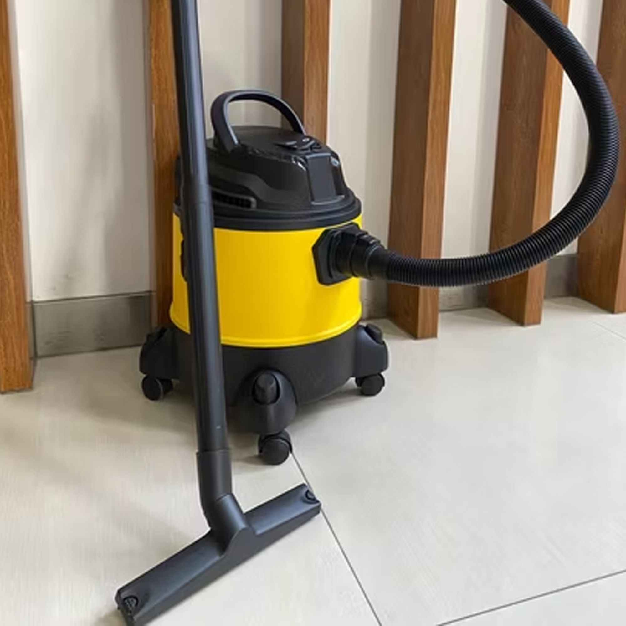قم بتوصيل المكنسة بمأخذ الطاقة المناسب. ثم، قم بتركيب الفلتر المناسب للاستخدام الرطب أو الجاف حسب الحاجة. بعد ذلك، قم بتوصيل الخرطوم والملحقات المناسبة للوظيفة المطلوبة. الآن، قم بتشغيل المكنسة باستخدام مفتاح التشغيل/الإيقاف. استخدم الملحقات المختلفة لتنظيف الأسطح المختلفة، مع مراعاة عدم تجاوز قدرة الشفط المتاحة. بعد الانتهاء، قم بإيقاف تشغيل المكنسة، وافصلها عن مصدر الطاقة، وقم بتنظيف الفلتر والملحقات.
