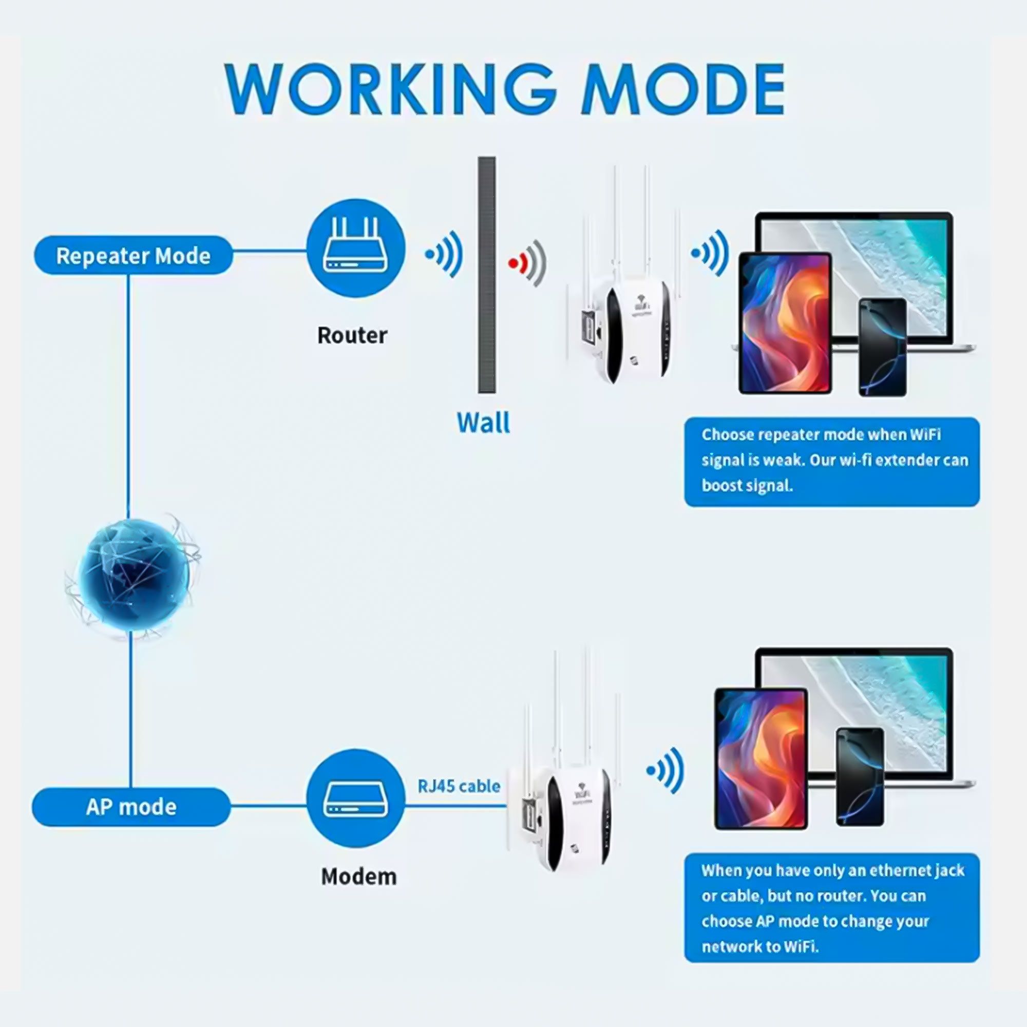 أوضاع التشغيل: Repeater / AP Mode