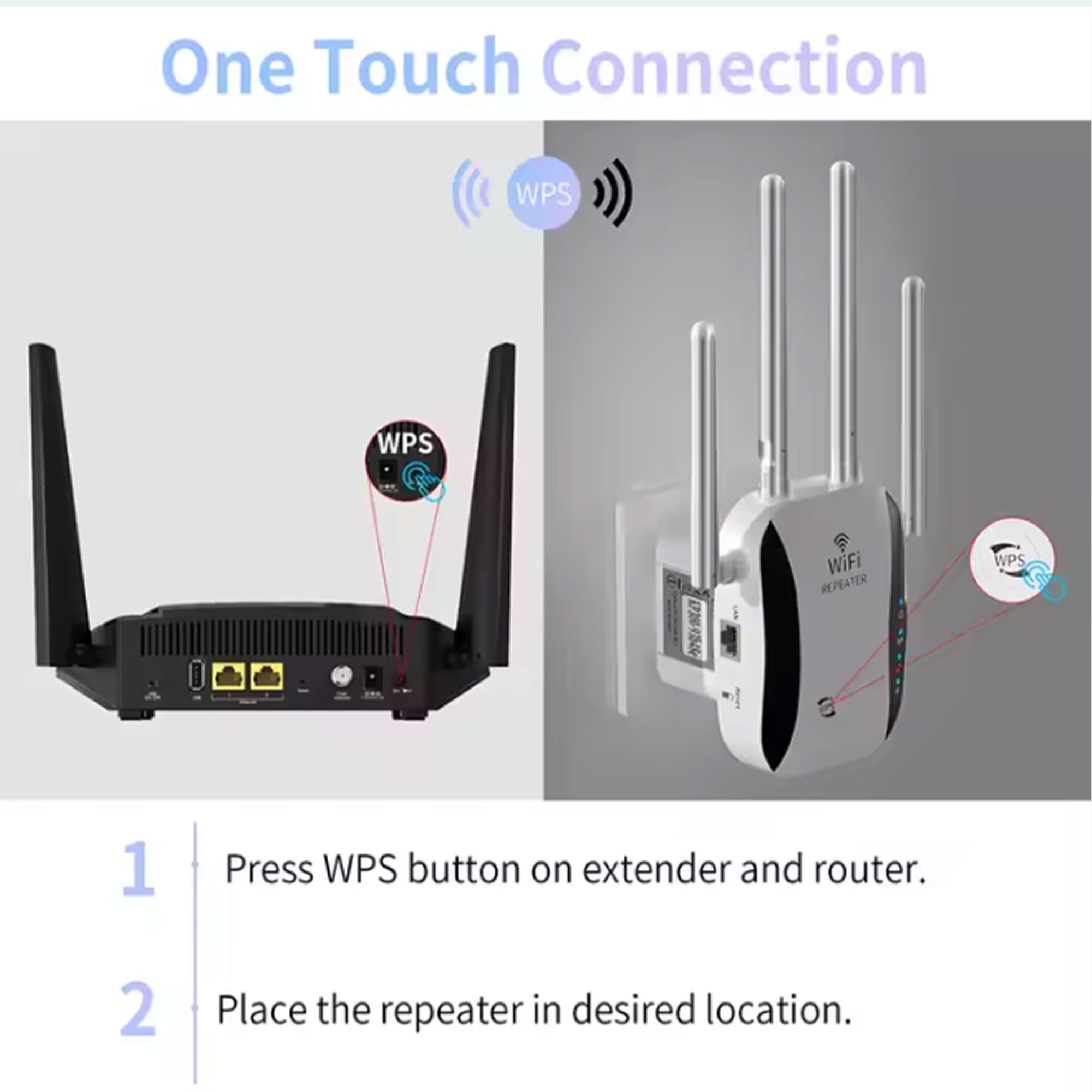 إذا تبغى وضع المكرر اضغط زر WPS بالجهاز والراوتر مع بعض يتصل تلقائي