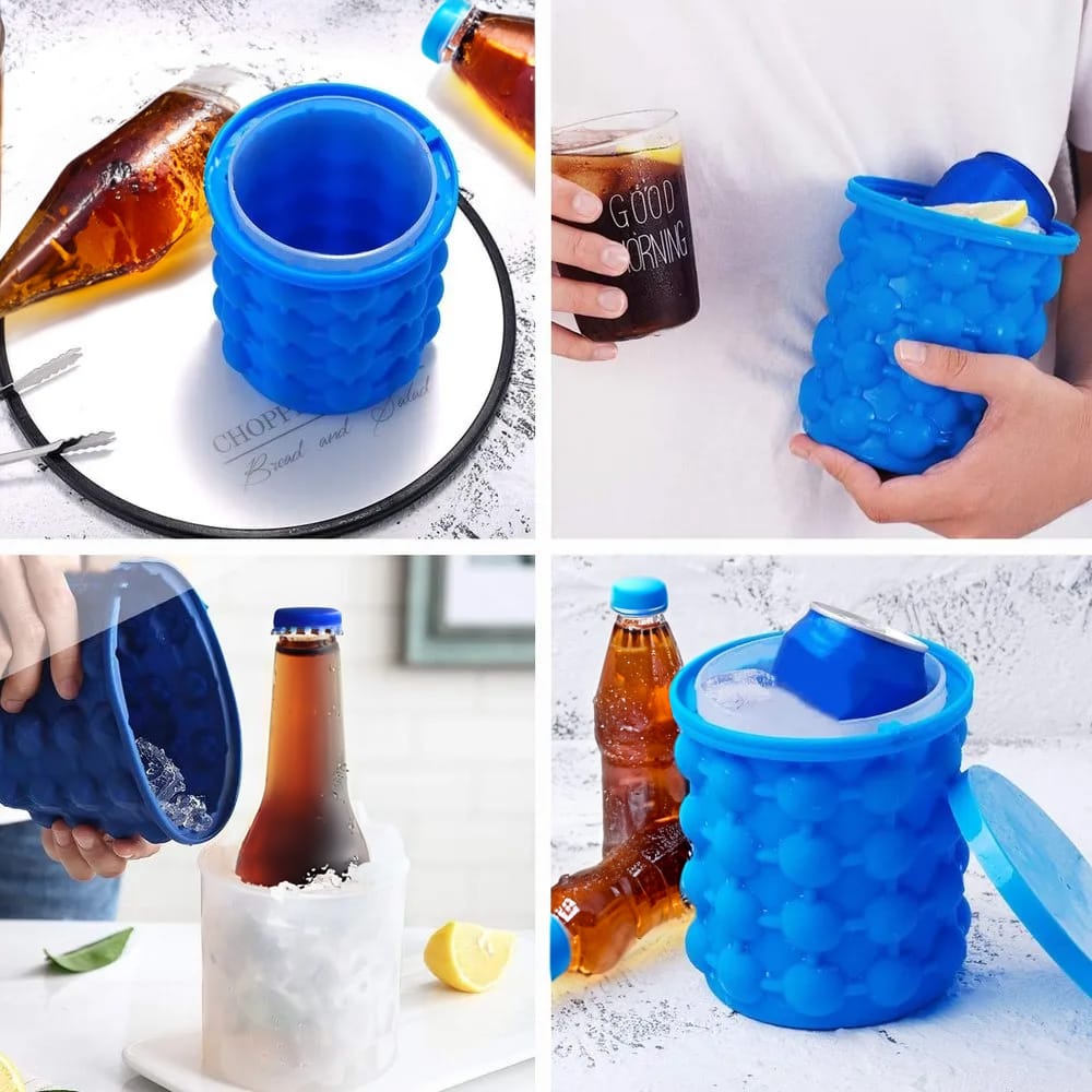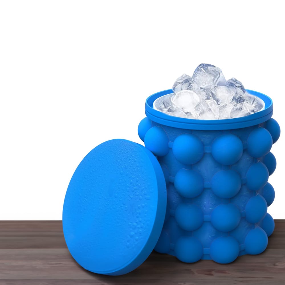 جردل ثلج كبير 2 في 1 من السيليكون مع غطاء، لصنع مكعبات الثلج المحمول.