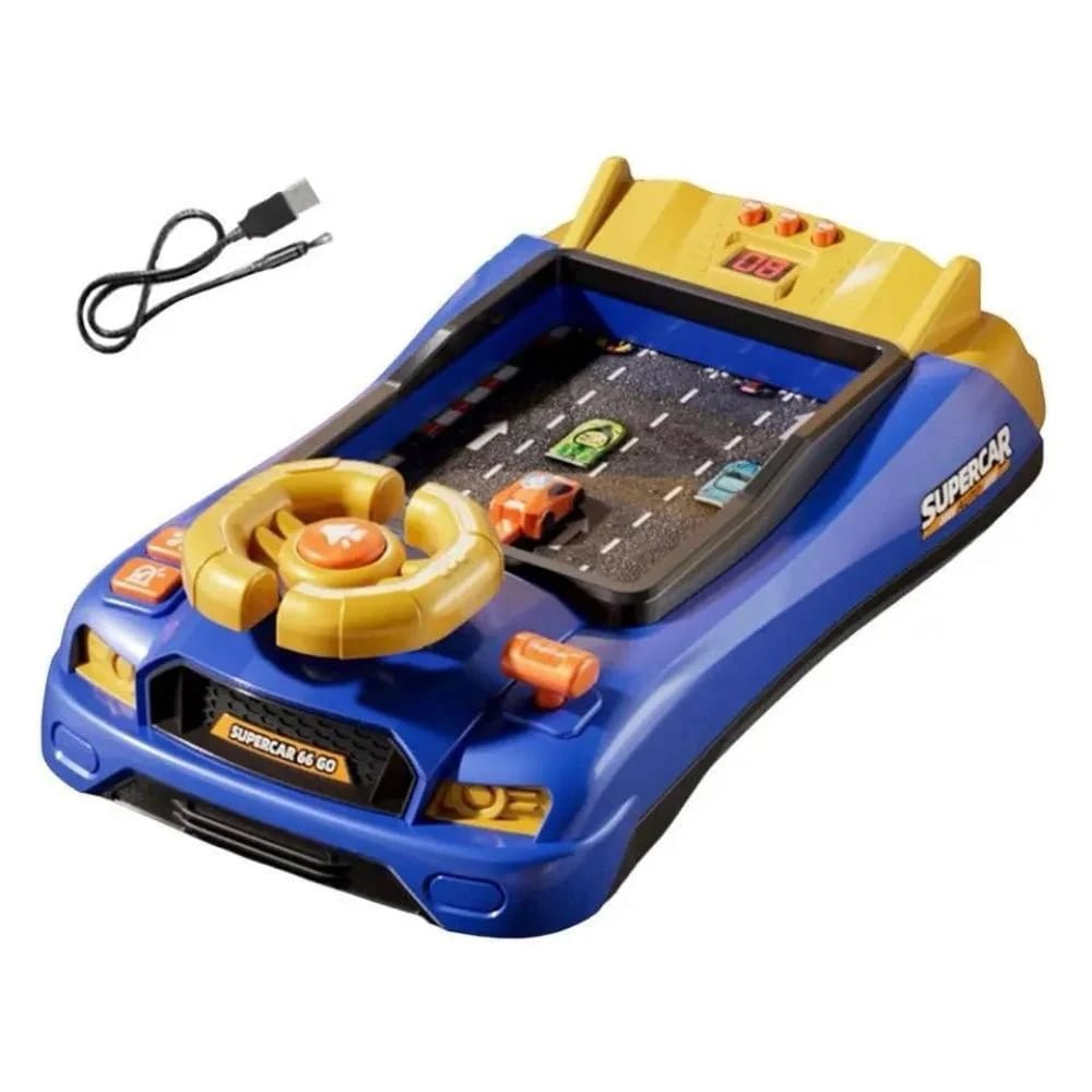 تصميم سيارة سباق أزرق جذاب يخلي اللعب ممتع.
