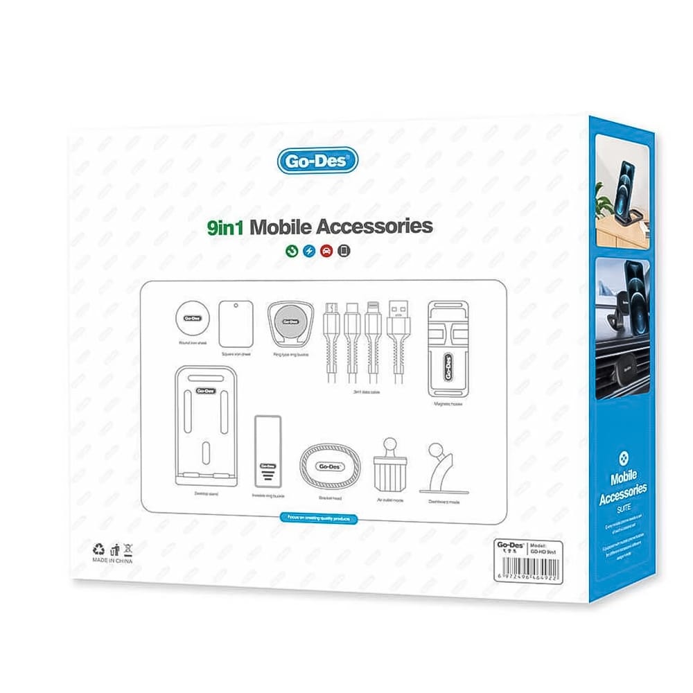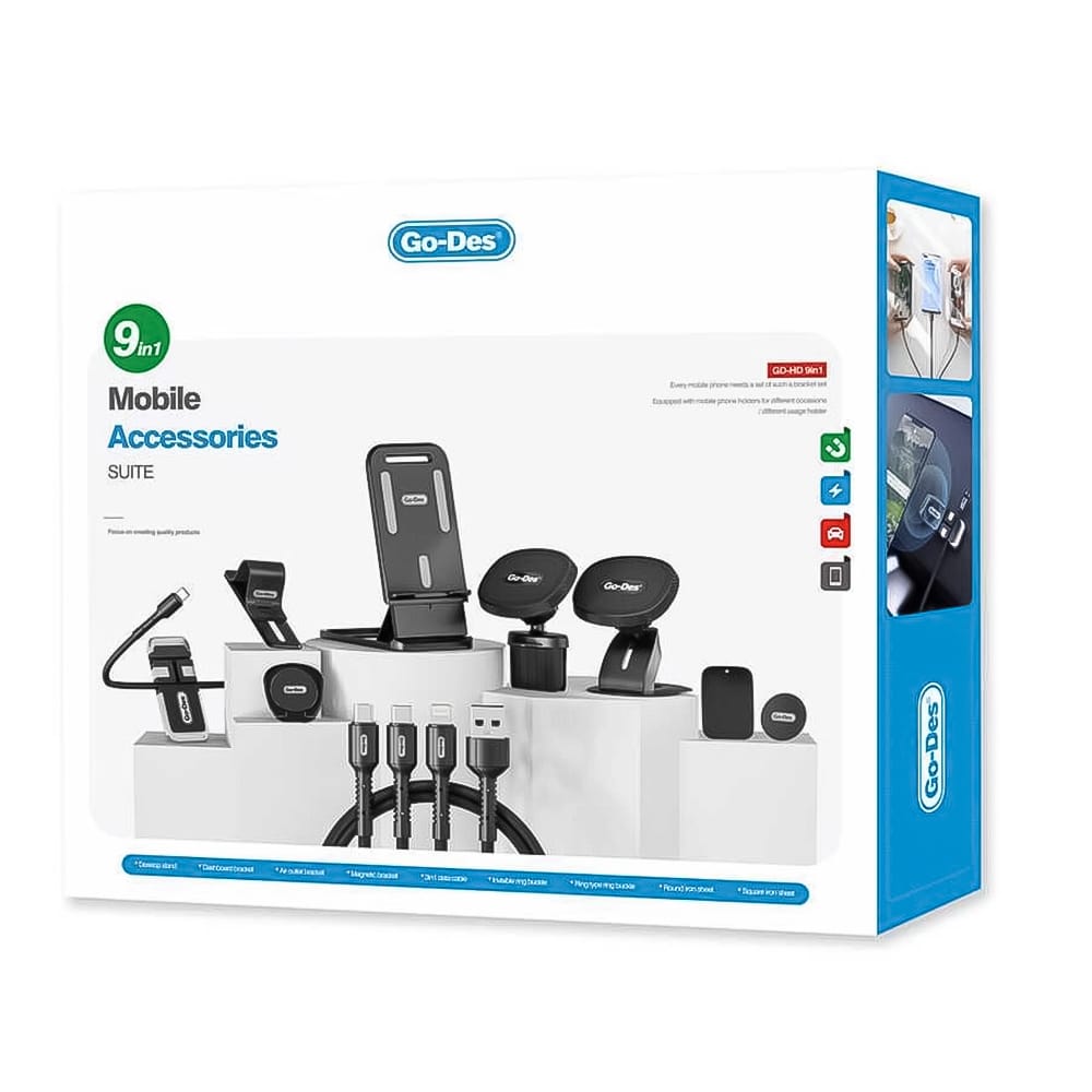 ثبّت الحامل أو المغناطيس في السيارة أو المكتب، وصل الكابل بالجهاز المناسب، واستفد من باقي الاكسسوارات مثل المسكات والمثبت لتجربة مريحة ومنظمة.