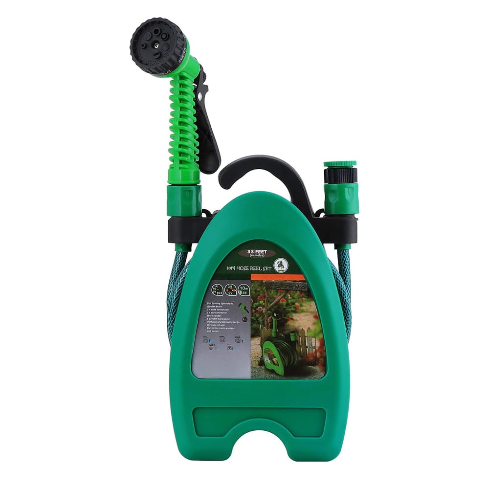 وصل الخرطوم بالمصدر المائي، اختر وضعية الرش المناسبة من 7 خيارات، بعد الانتهاء اطوِ الخرطوم وضعه في البكرة للتخزين السهل.