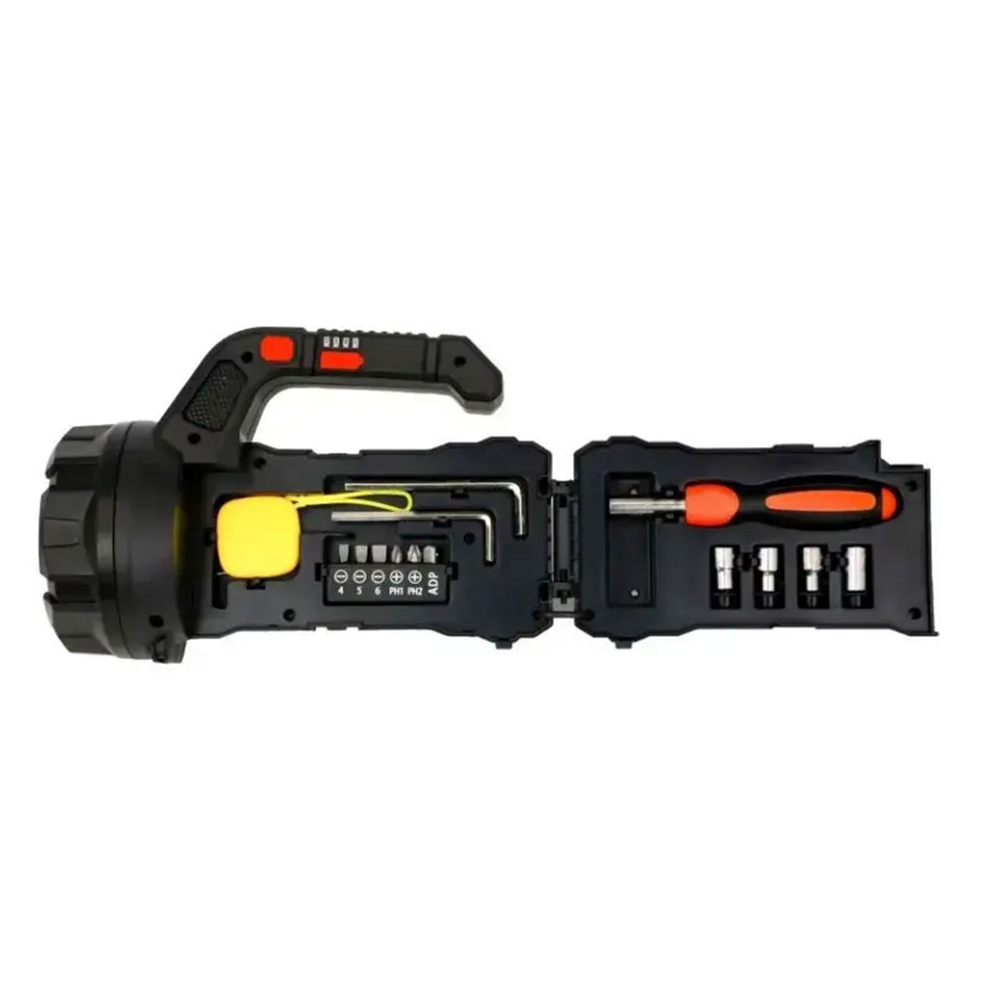 • مزود بمجموعة أدوات متكاملة تشمل مفكات، رؤوس متعددة، وأدوات إصلاح.