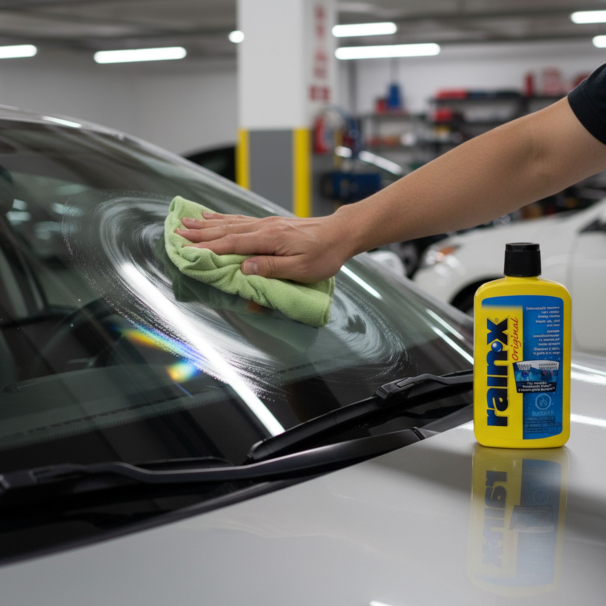 امسح الزجاج بحركة دائرية لتوزيع المنتج