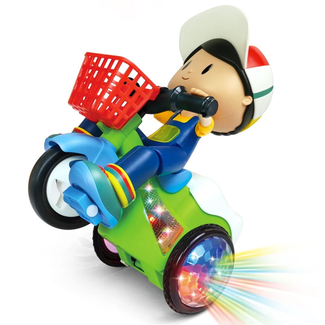شغّل الدراجة وحطها على سطح مستوي، وخلي طفلك ينبسط بالحركة والدوران.