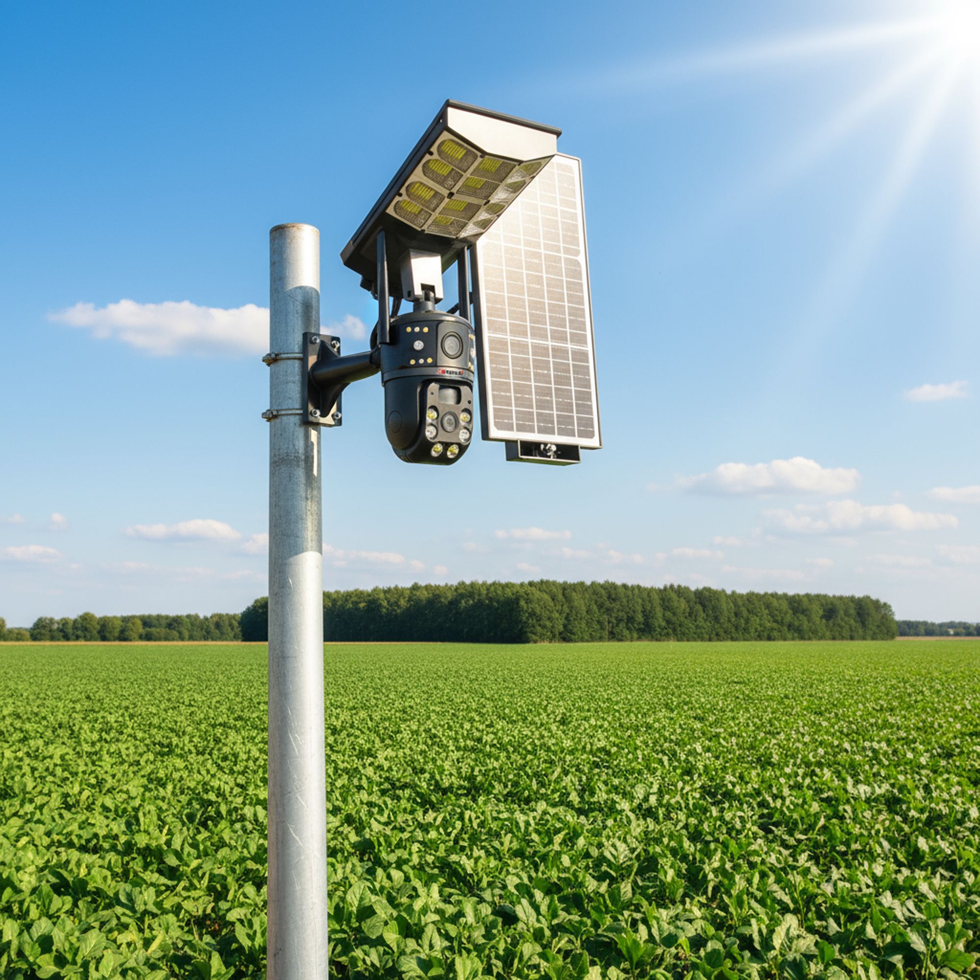 زاوية الإضاءة والمراقبة: كاميرا وضوء شارع بنفس الوقت تغطي وتنوّر المكان