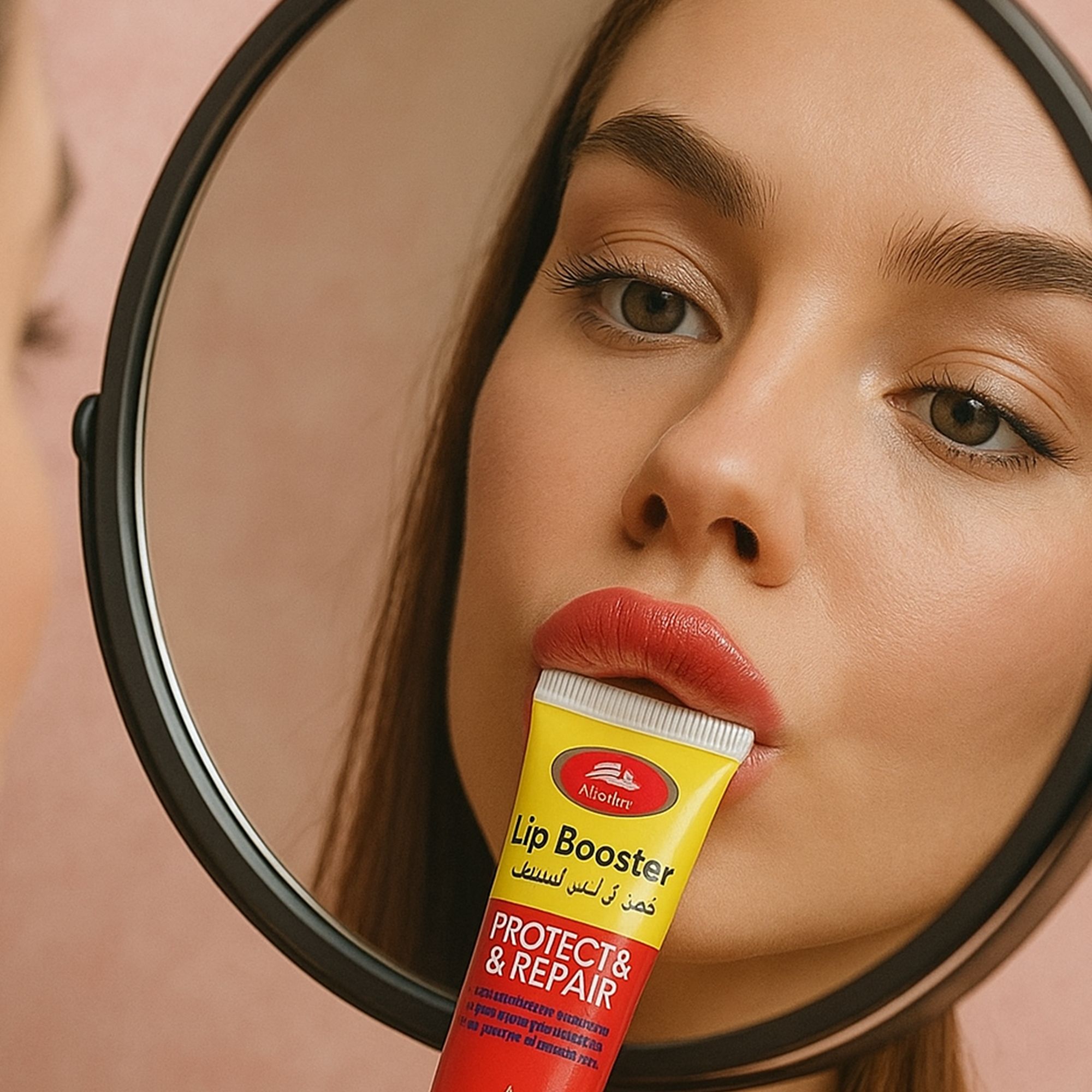 ضعي طبقة رقيقة من المكبر على شفتيكِ النظيفة والجافة.