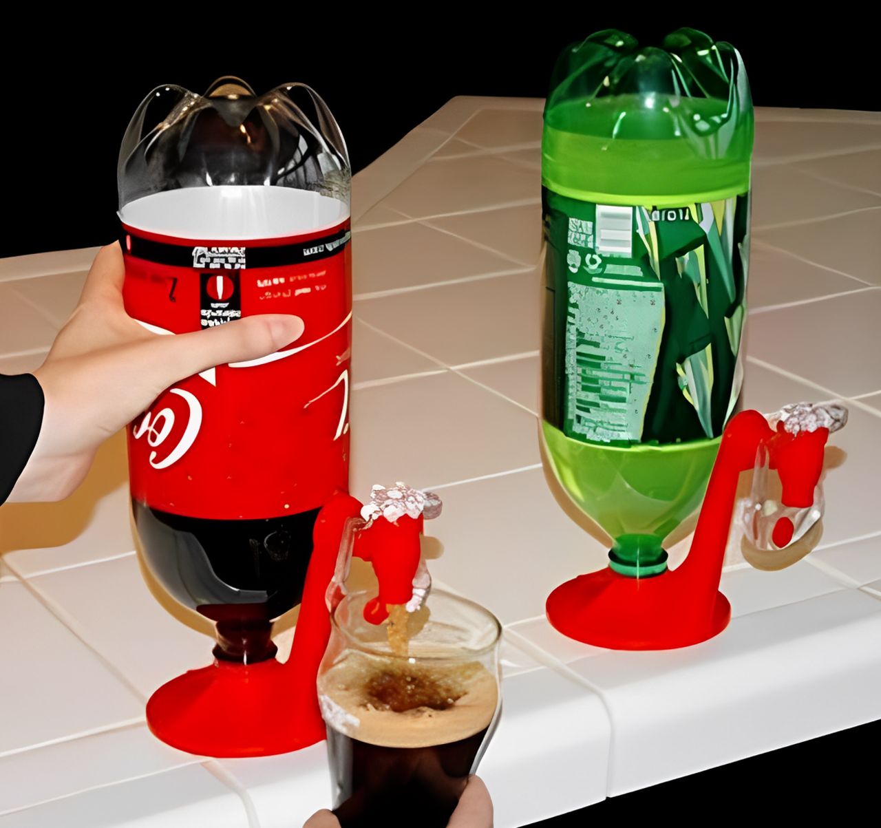 اضغط بيدك على الزجاجة، وبتطلع الموية مثل النافورة.